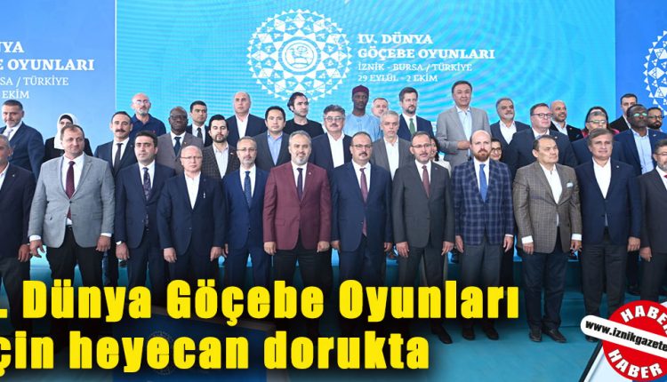 Dünyanın en büyük geleneksel spor etkinliği olan ve daha önce 3 kez Kırgızistan’da yapılan Dünya Göçebe Oyunları’nın 4’üncüsü, 29 Eylül-2 Ekim tarihleri arasında Bursa’nın İznik ilçesinde yapılacak. Dünya genelinde 102 ülkeden 3 binin üzerinde sporcunun katılacağı dev organizasyon için İznik ilçesinde aylardır süren çalışmalarda artık sona gelindi. Geleneksel sporların yaşatılması için büyük önem taşıyan 4. Dünya Göçebe Oyunları’nın tanıtım toplantısı İznik’te yapıldı. Etkinliklerin yapılacağı alanda gerçekleştirilen toplantıya, Gençlik ve Spor Bakanı Mehmet Muharrem Kasapoğlu, Bursa Valisi Yakup Canbolat, Büyükşehir Belediye Başkanı Alinur Aktaş, Dünya Etnospor Konfederasyonu Başkanı Bilal Erdoğan, Türk Konseyi Genel Sekreteri Bağdat Amreyev, Dünya Göçebe Oyunları Organizasyon Komitesi ve Türkiye Geleneksel Spor Dalları Federasyonu Başkanı Hakan Kazancı ve organizasyona katılacak 40’tan fazla ülkenin büyükelçileri katıldı.