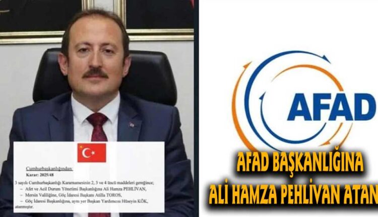 Cumhurbaşkanı Recep Tayyip Erdoğan’ın imzası ile yayımlanan karara göre, Afet ve Acil Durum Yönetimi (AFAD) Başkanlığına Eski İznik Kaymakamı Mersin Valisi Ali Hamza Pehlivan atandı.