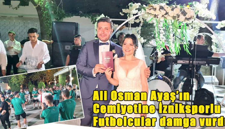 Düğüne katılan davetlilerin doyasıya eğlendiği saatlerde İzzet Peşte Tesislerinde kampta bulunan İzniksporlu futbolcular hep birlikte düğüne gelerek eski kaptan Ali Osman Ayaş’a sürpriz yaptı. Futbolcular İznikspor’un eski kaptanı Ayaş ile birlikte çiftetelli oynayıp halay çektiler.