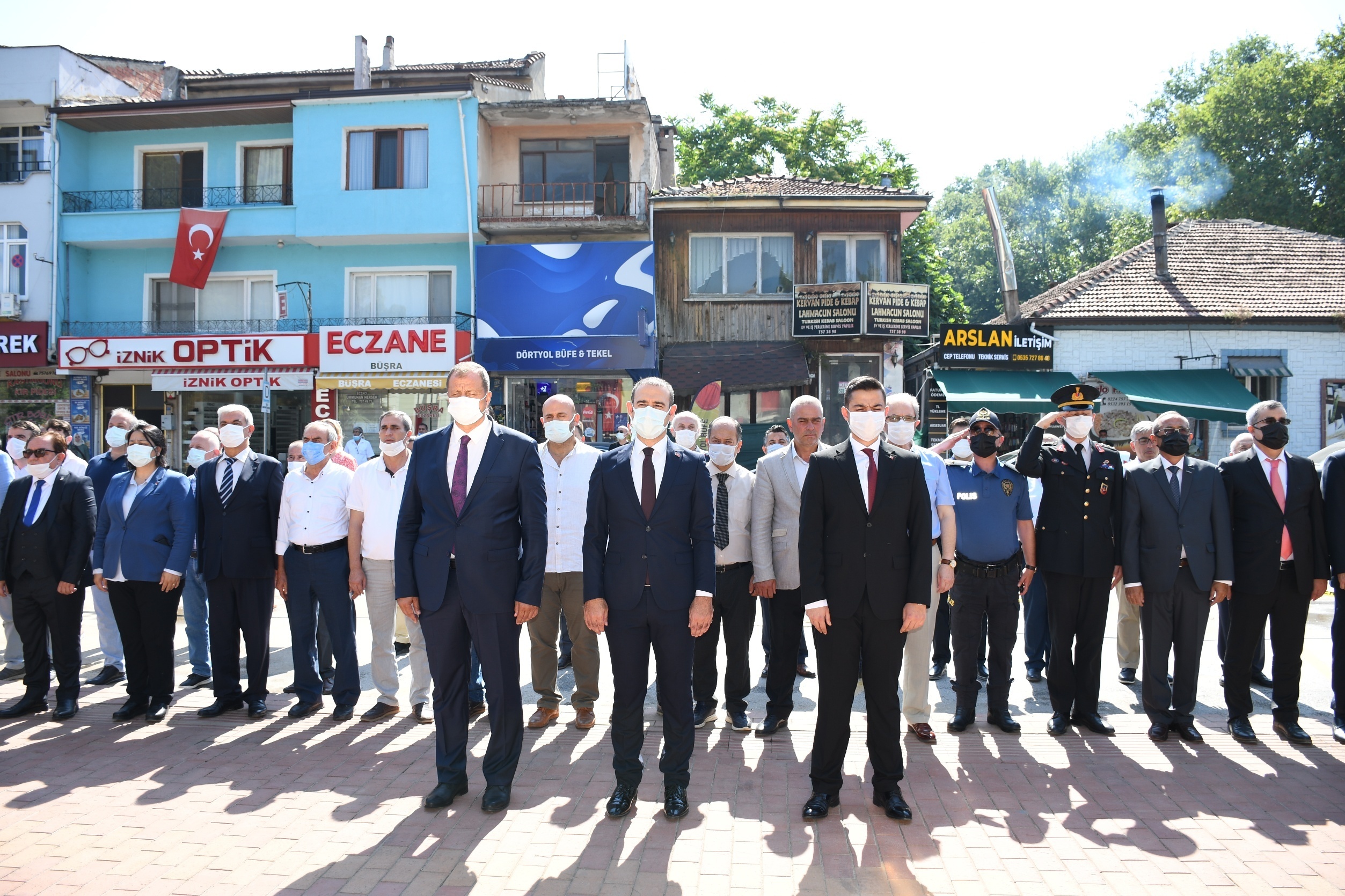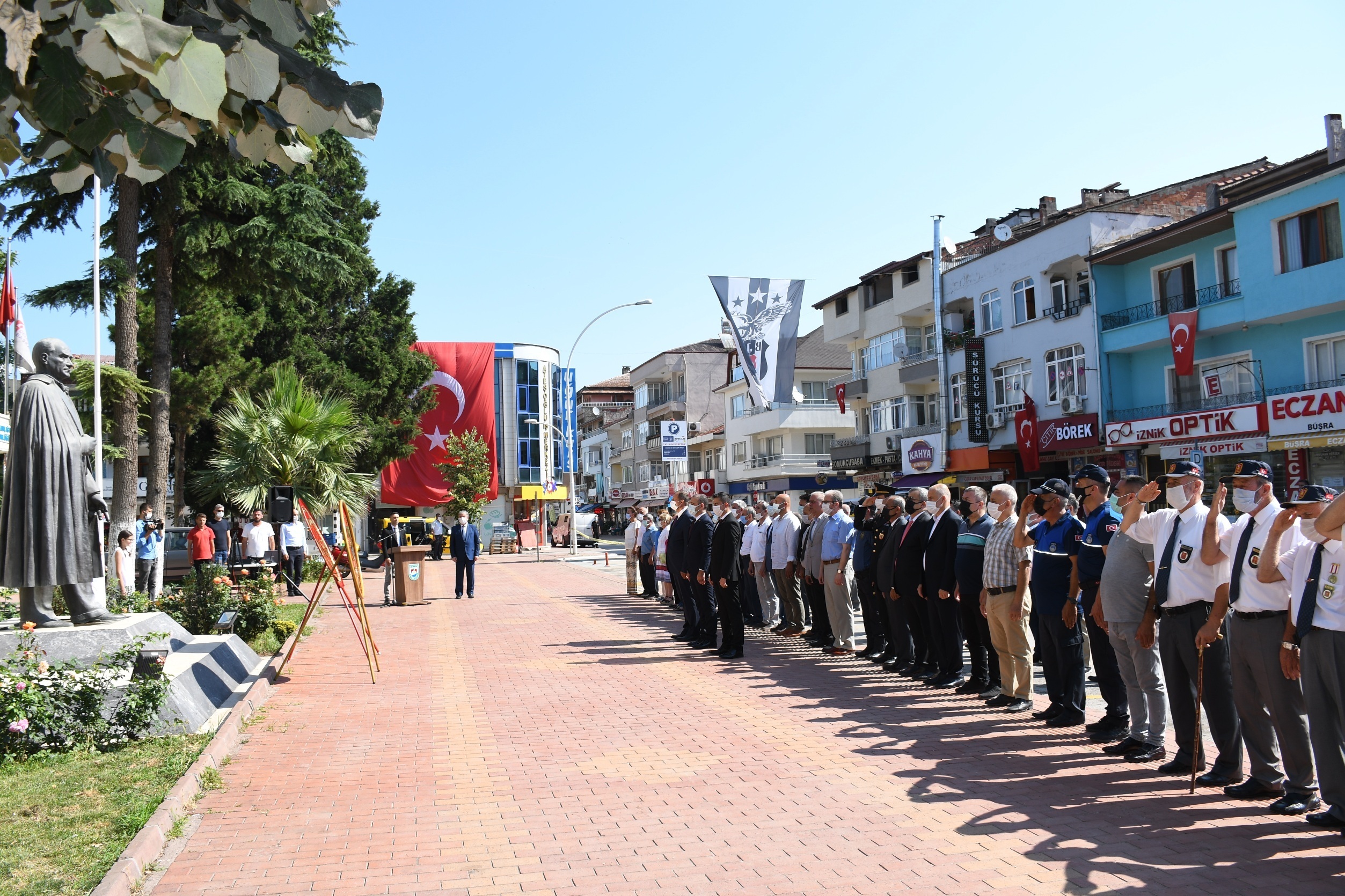 Atatürk’ün İznik’e gelişinin 86. yılı anma törenlerine İznik Kaymakamı Recai Karal, İznik Belediye Başkanı Kağan Mehmet Usta, Cumhuriyet Savcısı Muhammed Cuma Yanmaz, İlçe Jandarma Komutanı Yüzbaşı Tuncay Doğan, İlçe Emniyet Müdürü Mithat Öztaş, İlçe Müftüsü Üzeyir Yavaş, İlçe Milli Eğitim Müdür Vekili Kemal Ünal, Siyasi Parti İlçe Başkanları ve yönetimi, Gaziler Derneği Başkanı İbrahim Eroğlu ve yönetimi Kamu Kurum ve Kuruluşları, Sivil Toplum Örgütleri, Belediye Daire Amirleri ve halkın katılımı ile gerçekleşti.