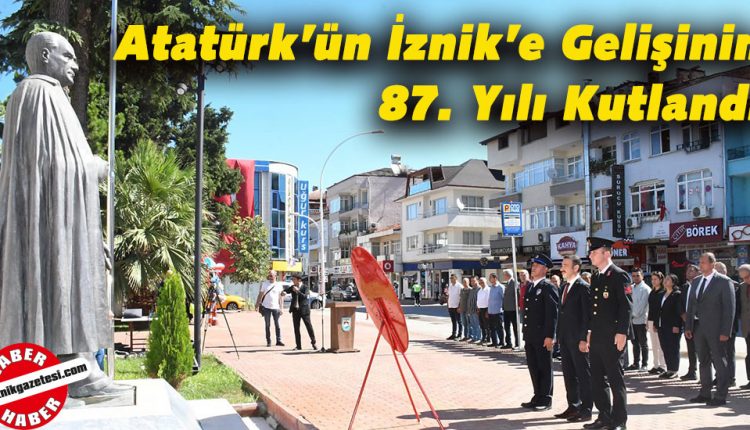 Atatürk’ün İznik’e gelişinin 87. yılı anma törenlerine İznik Kaymakamı Recai Karal, İznik Belediye Başkanı Kağan Mehmet Usta, Cumhuriyet Savcısı Muhammed Cuma Yanmaz, İlçe Emniyet Müdürü Mithat Öztaş, İlçe Müftüsü Üzeyir Yavaş, Siyasi Parti İlçe Başkanları ve yönetimi, Gaziler Derneği Başkanı İbrahim Eroğlu ve yönetimi, Kamu Kurum ve Kuruluşlarının temsilcileri, Sivil Toplum Örgütleri, Belediye Daire Amirleri ve halkın katılımı ile gerçekleşti.