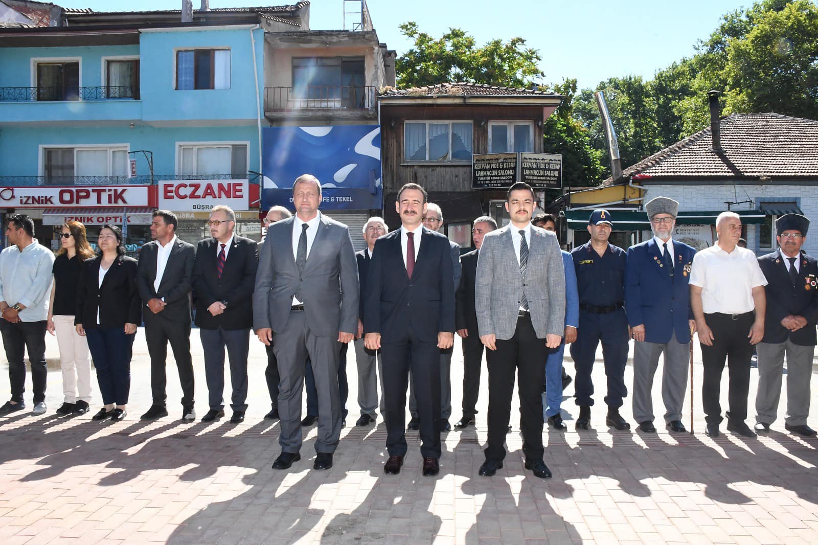 İznik Kaymakamı Recai Karal ve İznik Belediye Başkanı Kağan Mehmet Usta’ın çelenk sunumu ile başlayan program Saygı duruşu ve İstiklal Marşının okunmasıyla devam etti.