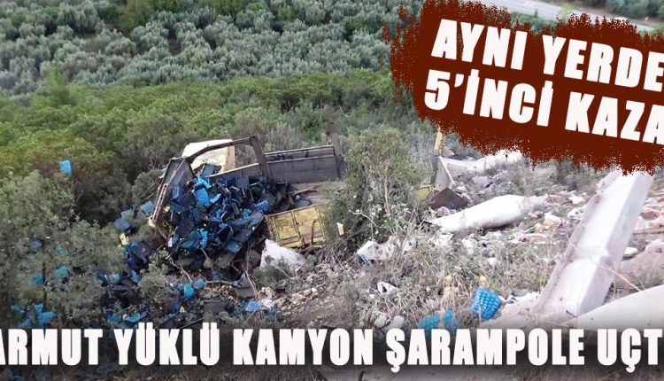 Yenişehir virajında kontrolden çıkan meyve yüklü kamyon virajı alamayarak önce TIR’a çarptı ardından şarampole yuvarlandı. Aynı yerden daha önce dört araç şarampole uçmuştu.