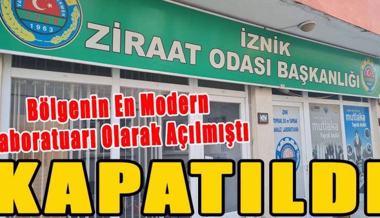 2017 yılında kurulduğunda Kamu ve Özel Laboratuarlar arasında Bursa Bölgesinde benzeri olmayan bir laboratuar kurulmuş olup, toprak ve yaprak örneklerinde ki tüm element tahlillerinin en hassas değerlerle ölçülebildiği (ICP-OES) bir merkez olarak hizmete başlamıştı. Ekim ayında alınan karar sonrasında kapatılan Laboratuarla ilgili konuşan İznik Ziraat Odası Başkanı Vahit Mutlu “ başta İznikli çiftçimize ve komşu ilçelerimize hizmet eden Laboratuarımızı maalesef kapatmak zorunda kaldık. Geçtiğimiz yıl odamız bünyesinden finanse ettiğimiz laboratuar içinde bulunduğumuz zamanda iyice artan maliyetler karşısında işleyemez duruma geldi. Yönetim kurulumuzun aldığı karar neticesinde Kasım ayı itibari ile hizmeti sonlandırmak zorunda kaldık” dedi.