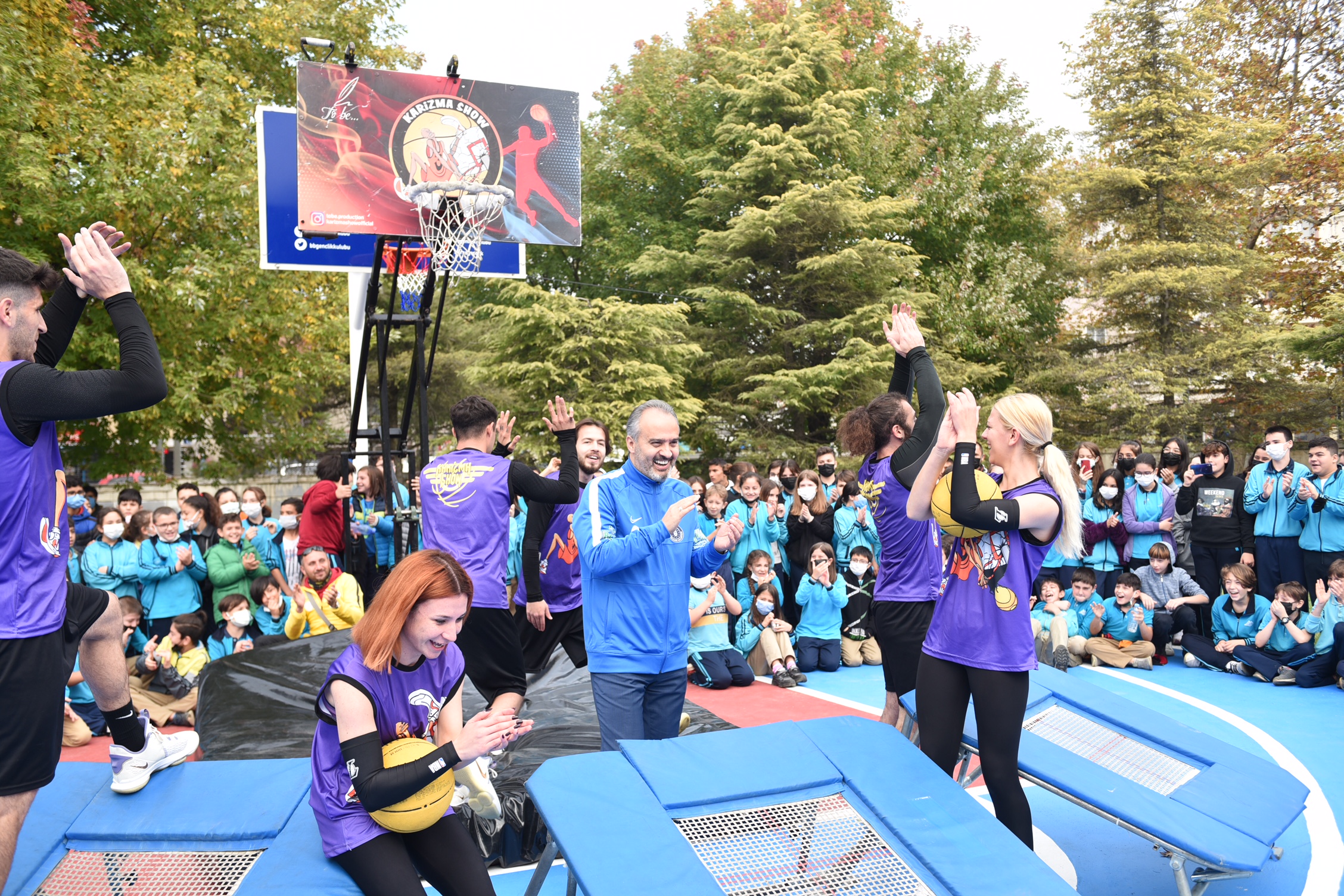 Konuşmaların ardından Başkan Aktaş ve protokol üyeleri çocuklarla birlikte basketbol sahasına geçerek, Karizma Şov’un basketbol gösterisini izledi. Gösterinin bir bölümüne eşlik eden Başkan Aktaş, daha sonra İl Milli Eğitim Müdürü Serkan Gür ve AK Parti İl Başkan Yardımcısı Mustafa Yavuz ile birlikte Karizma Şov basket takımına karşı tek pota maç yaptı.