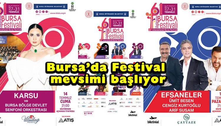 Bursa Büyükşehir Belediyesi adına Bursa Kültür Sanat ve Turizm Vakfı (BKSTV) tarafından Kültür ve Turizm Bakanlığı’nın katkılarıyla, Atış Şirketler Grubu ana sponsorluğunda bu yıl 61’si düzenlenecek olan ‘Uluslararası Bursa Festivali, Uludağ Premium sponsorluğunda ünlü söz yazarı ve piyanist Karsu ve Bursa Bölge Devlet Senfoni Orkestrası’nın konseri ile başlıyor.