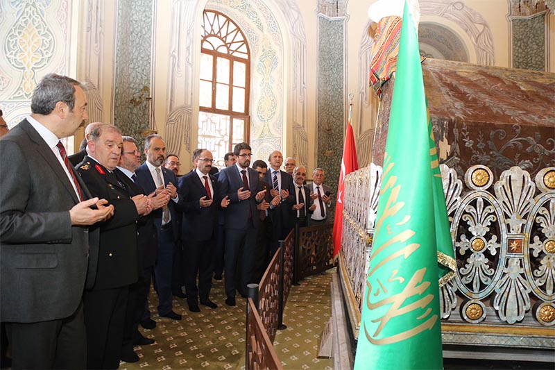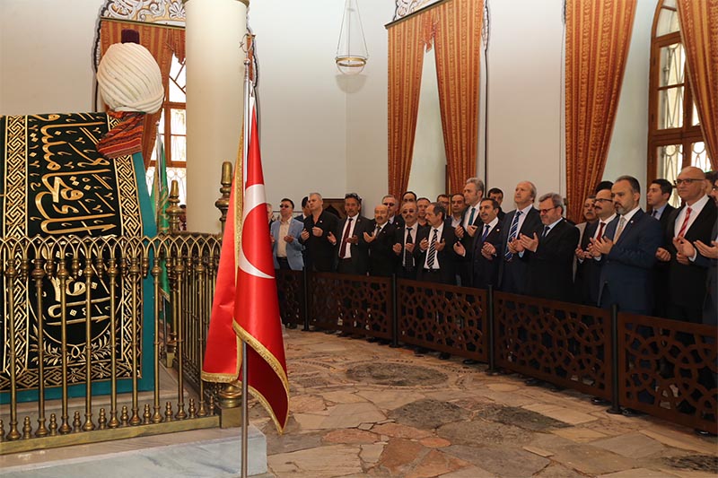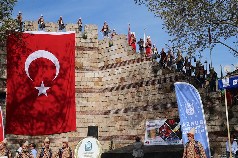 Programın sonunda protokol üyeleri ve vatandaşlar, Mehter Takımı ve halk oyunları ekiplerinin eşliğinde Tophane’deki Osman Gazi ve Orhan Gazi türbelerine kadar yürüdü. Vatandaşların evlerinden çıkarak coşkuya ortak olduğu yürüyüşte, fetih ruhu bir kez daha yaşandı. Yürüyüşün sonunda türbelerde ecdat için dualar edildi.
