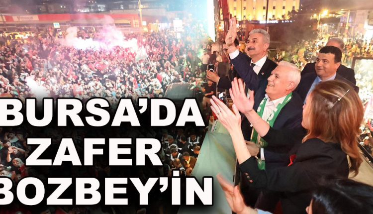 Bursalıların izdiham yarattığı alanda büyük bir coşku ve havai fişekler eşliğinde karşılanan Bozbey, seçim otobüsünden Bursalılara seslenerek zafer konuşması yaptı.