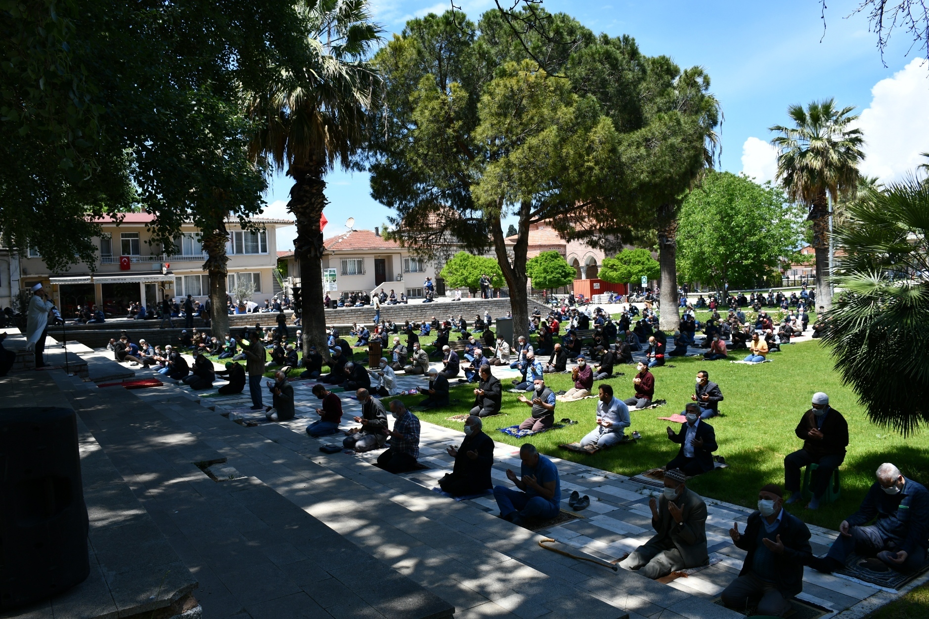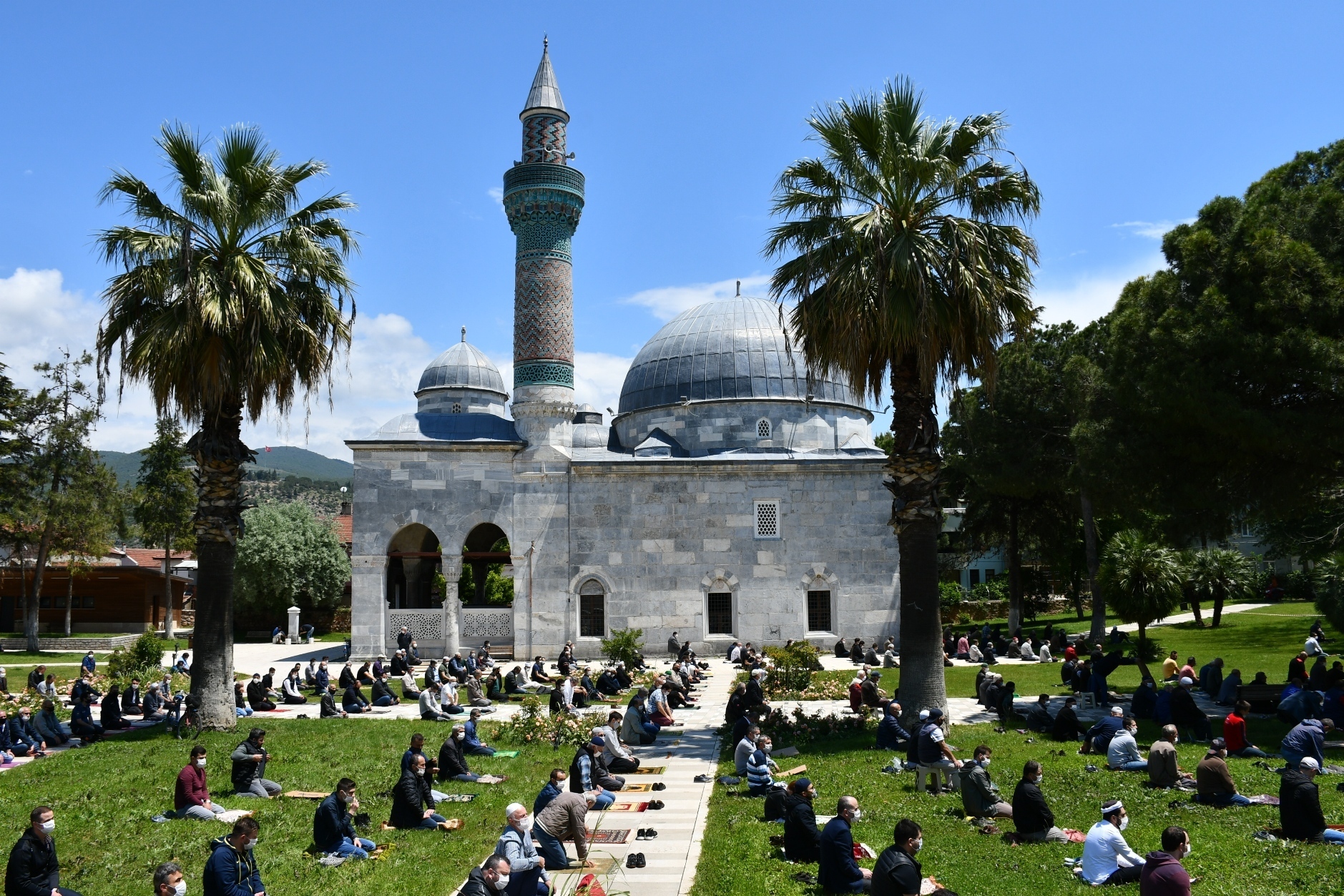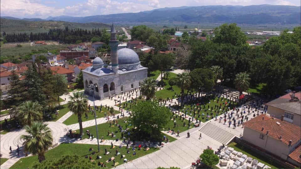Corona virüs tedbirleri kapsamında bir süredir kapalı olan camiler bugün açıldı. Cuma namazı için ellerinde seccadeleriyle Yeşil Camii’ne gelmeye başlayan vatandaşlar, sosyal mesafeye uyarak saf tuttu. Vatandaşların cami avlusuna girişi havadan görüntülendi. Cuma namazını öncesi İznik İlçe Müftüsü Üzeyir Yavaş hutbeyi irad etti. Müftü Üzeyir Yavaş daha sonra cemaate Cuma namazını kıldırdı.