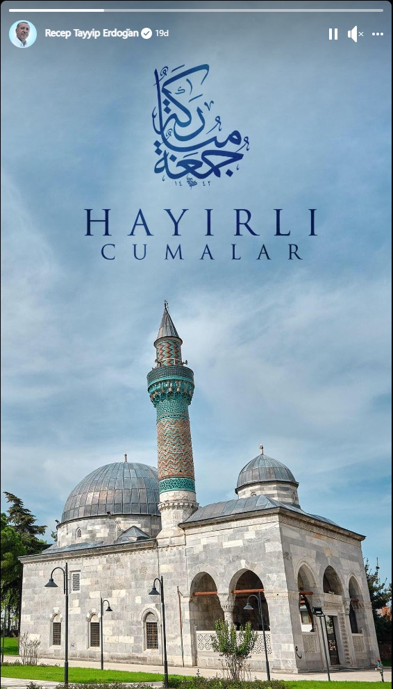 Hayırlı Cumalar Mesajında İznik Yeşil Cami görseli ile yapılan paylaşım sosyal medyada büyük ilgi gördü.