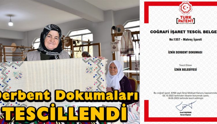 Kente özgü kültürel ve tarımsal ürünlerin korunması ve tanıtımı için çalışan İznik Belediyesi, İznik Müşküle Üzümü ve Müşküle İğne Oyasının ardından Derbent Dokumaları’nı da Türk Patent ve Marka Kurumu’nun Coğrafi İşaret belgesiyle tescilletti.