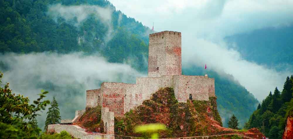 Şehrin merkezinde yer alan Rize Kalesi, Bizans’tan kalma taşlarıyla hâlâ dimdik ayakta.