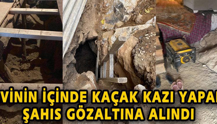 EVİNİN İÇİNDE KAÇAK KAZI YAPAN ŞAHIS GÖZALTINA ALINDI.