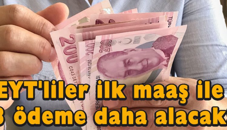 Emeklilikte yaşa takılanlar için yapılan EYT düzenlemesi Resmi Gazete yayımlandı ve Mart ayı içerisinde 1,5 milyonu aşkın başvuru geldi. Mart ayı içerisinde başvurusunu gerçekleştiren EYT’liler 1 Nisan’dan itibaren tüm haklarını alacak. Öte yandan EYT’liler emekli maaşı ile birlikte 3 ödeme daha hak edecek.