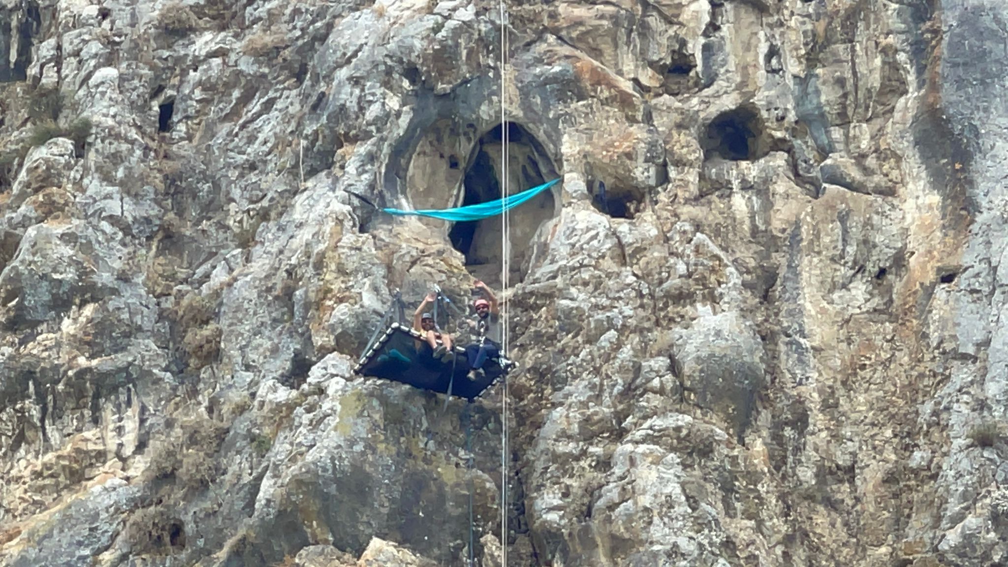 3 Maceraperest Müşküle Mahallesinde 116 metre yüksekliğindeki Sarıkaya’ya tırmandı. Geceyi kurdukları hamakta geçiren dağcılar, selfie yapmayı da ihmâl etmedi. Yoldan geçen vatandaşlar ise çılgın dağcıları görüntülediler.