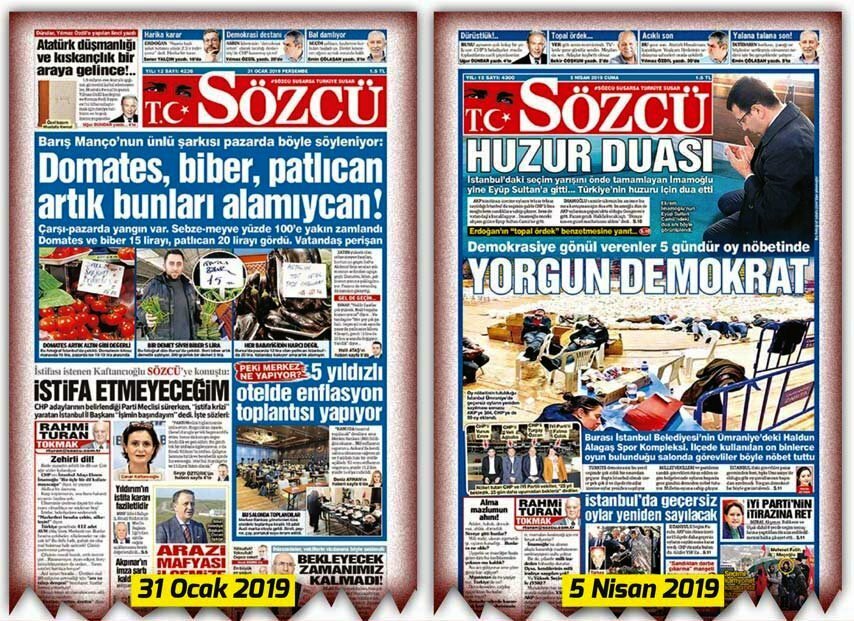 15 ulusal gazeteden 5 bin 475 manşetin MediaCat Yazı İşleri Ekibi tarafından ön elemeden geçirilip, toplamda 135 manşetin değerlendirildiği çalışmada, 01 Aralık 2018-30 Kasım 2019 tarihleri arasındaki gazete manşetleri değerlendirmeye alındı. SÖZCÜ’nün 31 Ocak 2019 tarihli Halil Ataş imzalı “Domates, biber, patlıcan… Artık bunları alamıycan” başlıklı manşeti ile Hande Zeyrek’in 5 Nisan 2019 tarihli “Yorgun Demokrat” başlıklı manşeti en iyi manşetler sıralamasına girdi.