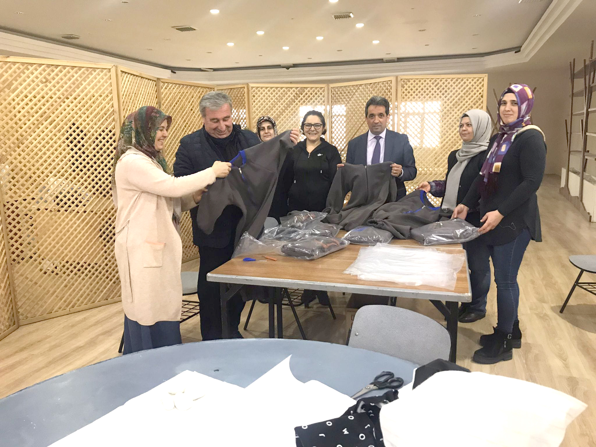Halk Eğitim Merkezi Müdürlüğü imal edilen uyku tulumu ve giyim eşyalarını paketleyerek Kaymakamlık Koordinasyonu ile deprem bölgesine ulaştıracak.