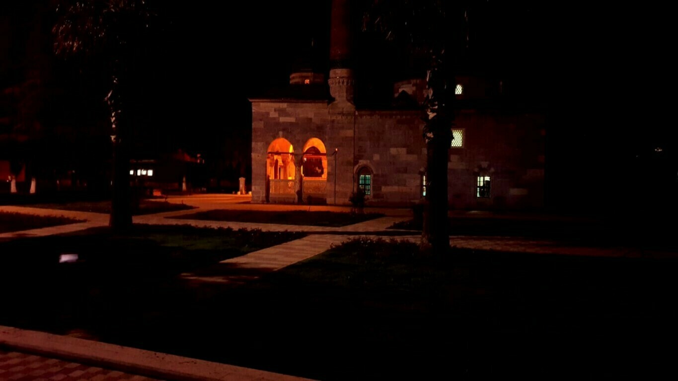 İznik Yeşil Camii Restorasyonu’nun bitmesinin ardından çevre düzenlemesi de bitme noktasına gelen Cami bahçesi gündüz kartpostallık görüntüler verse de gece karanlığa bürünüyor.