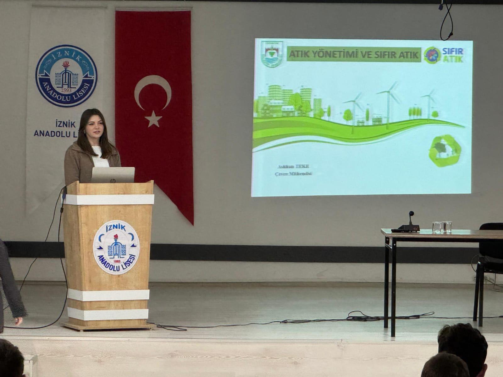 Seminerlerin ilk durağı İznik Anadolu Lisesi oldu. Burada öğrencilerle bir araya gelen yetkililer, çevre kirliliğinin önlenmesinden sıfır atık uygulamalarına kadar birçok önemli konuda bilgilendirme yaptı. Eğitim sırasında atıkların doğru şekilde ayrıştırılması, geri dönüşüm malzemelerinin ekonomiye kazandırılması ve bireysel çevre duyarlılığının artırılmasının önemi vurgulandı. Ayrıca çevrenin korunması için günlük yaşamda uygulanabilecek pratik yöntemler de öğrencilere aktarıldı.