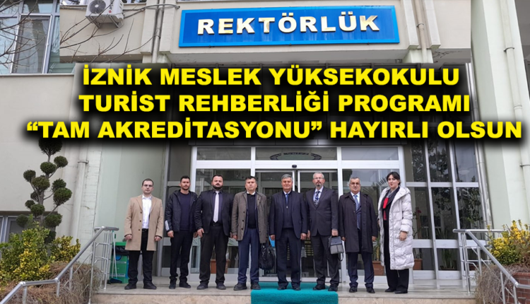 Turizm Akreditasyon Derneği Yönetim Kurulu Başkanı Prof. Dr. Muharrem TUNA’nın imzasıyla gönderilen 03.01.2025 tarihli ve 2025/015 sayılı Akreditasyon Kararı ve Raporu değerlendirme yazısı sonucunda Turizm Eğitimi Değerlendirme ve Akreditasyon Kurulu (TURAK) tarafından Yüksekokulumuz Turist Rehberliği Programı için 31.12.2024-31.12.2030 tarihleri arasında üç + üç (3 +3) yıl toplam altı (6) yıl için geçerli olmak üzere TAM AKREDİTASYON kararı verilmiştir. TURAK’ın 27.12.2024 tarih ve 11 sayılı toplantısında oybirliği ile alınan bu karar, turizm yükseköğretiminde kalitenin geliştirilmesi ve iyileştirilmesine ve İznik İlçesinin turizm potansiyeline önemli katkılar sağlayacaktır.