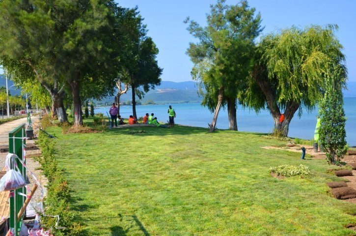 İznik Belediye Başkanı Osman Sargın Sahil Projesinde başlanan peyzaj çalışmalarını inceleyerek yetkililerden bilgi aldı. İznik Sahili peyzaj düzenlemesi ile 3,5 km’lik sahil boyunca 53 bin metrekarelik alana çim seriliyor. Çim serilen ve ağaçlandırılması gerçekleşen bölgeler adeta botanik bahçesini andırıyor.
