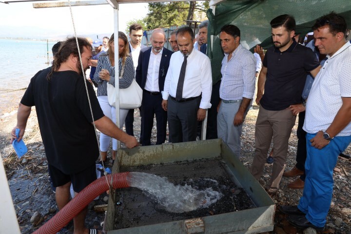 100 yılın keşfi olarak nitelendirilen İznik Gölü’ndeki Bazilikayı gezen Büyükşehir Belediye Başkanı Alinur Aktaş, kazı ekibinin başında yer alan Uludağ Üniversitesi Öğretim Üyesi Prof. Dr. Mustafa Şahin’den gerçekleştirilen faaliyetler hakkında bilgiler aldı. 2015 senesinde Bazilikada başlayan çalışmaların son 1 senedir hız kazandığını söyleyen Başkan Alinur Aktaş, finansmanın tamamen Büyükşehir Belediyesi tarafından karşılandığını ifade etti. İlk olarak su altındaki Bazilikanın ortaya çıkartılmasının hedeflendiğini belirten Başkan Aktaş, 7. konsülün burada toplandığının delillerle ortaya konulduğunu dile getirdi. Başkan Aktaş, “Yurtdışından yoğun olarak ‘bölgenin incelenmesi, çalışmaların durumu ve açılış tarihiyle ilgili’ sorular geliyor. İlk aşamada çalışmaları tamamlayıp, Bazilikanın müzeye dönüştürülmesini hedefliyoruz. İkinci aşamada ise su altında olması sebebiyle burada dalış yapılmasının yanında seyir terası ve cam odalar oluşturmayı düşünüyoruz. Bir yıl içerisinde bütün çalışmaları toparlayacağız. Hocamızla en son yaptığımız görüşmede bizlerden iki ay ek süre istedi. Sıkıntı olmadığını, hatta ekip sayısını artırarak faaliyetlere ivme kazandırabileceğimizi ifade ettik” dedi.