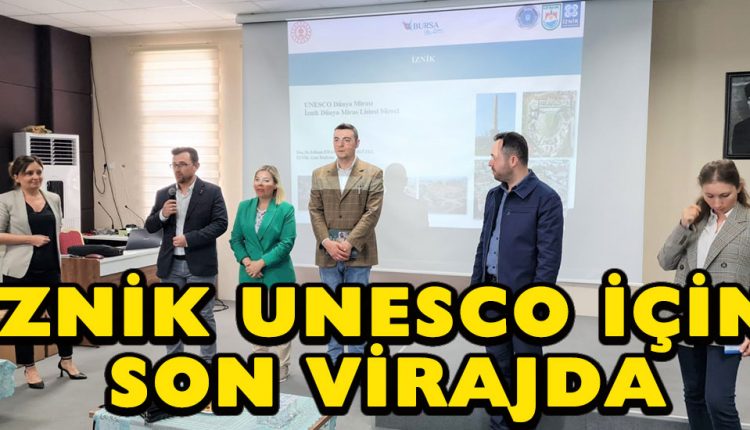 Tarihi özellikleri ile medeniyetlerin somut ve somut olmayan değerlerini bu güne taşıyan benzersiz tarihi kent olması nedeniyle UNESCO’ya aday olan İznik “ Medeniyetler Arası Geçişin İzleri” isimli adaylık dosyası ile 14 anıtsal yapı ve bileşenden oluşmuş bir bütün olarak adaylık listesinde yer alıyor. Bu eserler “Surlar ve anıtsal kapılar”, “Roma Tiyatrosu”, “Bazilika”, “Ayasofya Orhan Camii”, “Hacı Özbek Camii”, “Süleyman Paşa Medresesi”, “Yeşil Cami”, “Nilüfer Hatun İmareti”, “Eşrefzade Cami Minaresi ve Mezarlığı”, “İznik Çini Fırınları Kazı Alanı”, “Mahmut Çelebi Cami”, “Elbeyli Nikaian Dikilitaşı (Obelisk)