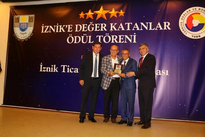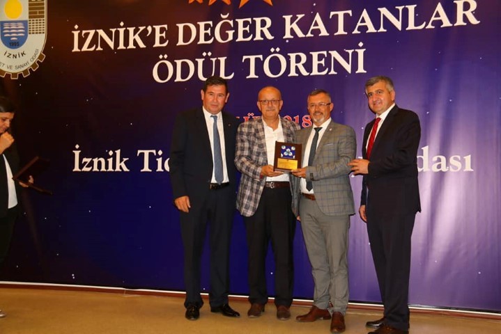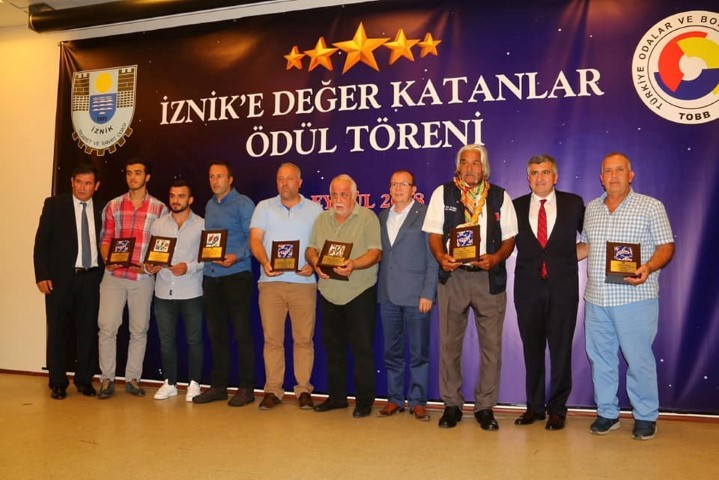 İznik Ticaret ve Sanayi Odası tarafından tertiplenen ve Türkiye Odalar ve Borsalar Birliği Başkanı Rıfat Hisarcıklıoğlu’nun da katılımı ile düzenlenen İznik’e değer katanlar ödül töreninde sanat, kültür, ekonomi, iş dünyası, spor dalları gibi 21 farklı kategoride 26 kişiye plaket verildi.