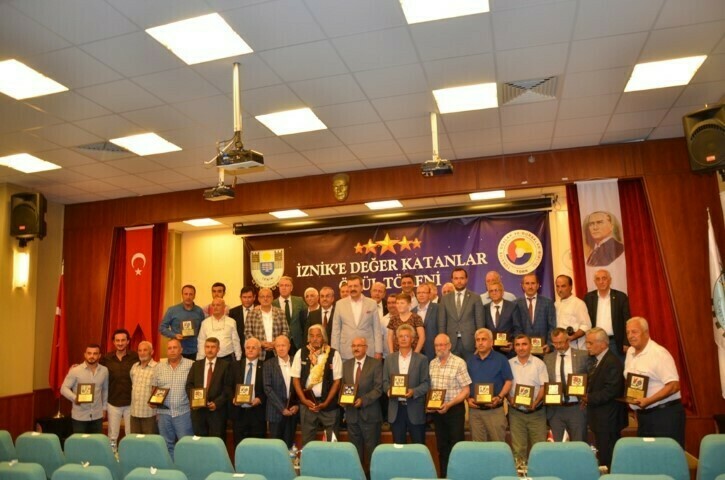 İznik’e değer katanlar ödül töreninde sanat, kültür, ekonomi, iş dünyası, spor dalları gibi 21 kategoride 26 kişi plaket aldı.