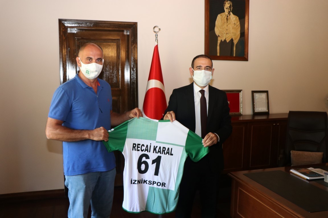 İznikspor yönetimi İlçe Kaymakamı Recai Karal ve Emniyet Müdürü Mithat Öztaş’ı makamında ziyeret etti.