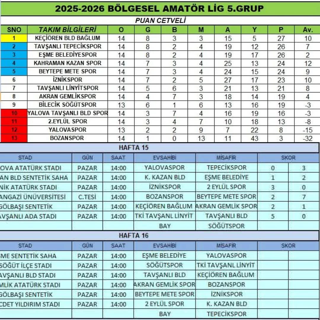 İznikspor, ligin 16. haftasında Beytepe Mete Spor deplasmanına konuk olacak. Beytepe Mete Spor, son maçını 7-2 kazanarak moral depolarken; puan durumunda İznikspor 23 puanla, Beytepe Mete Spor ise 24 puanla bir basamak üstte yer alıyor.
