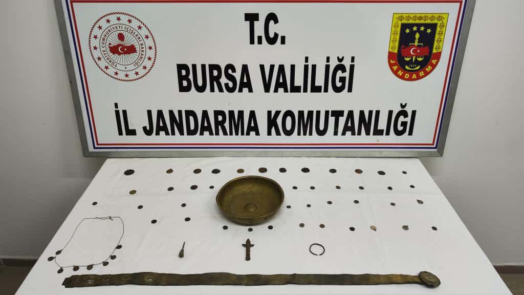 Bizans ve Roma İmparatorluğu dönemine ait olduğu değerlendirilen, 46 adet tarihi eser niteliği taşıyan sikke, 1adet tarihi eser niteliği taşıyan kemer, 4 adet tarihi eser niteliği taşıyan obje ve 1 adet tarihi eser niteliği taşıyan kolye ele geçirildi.
