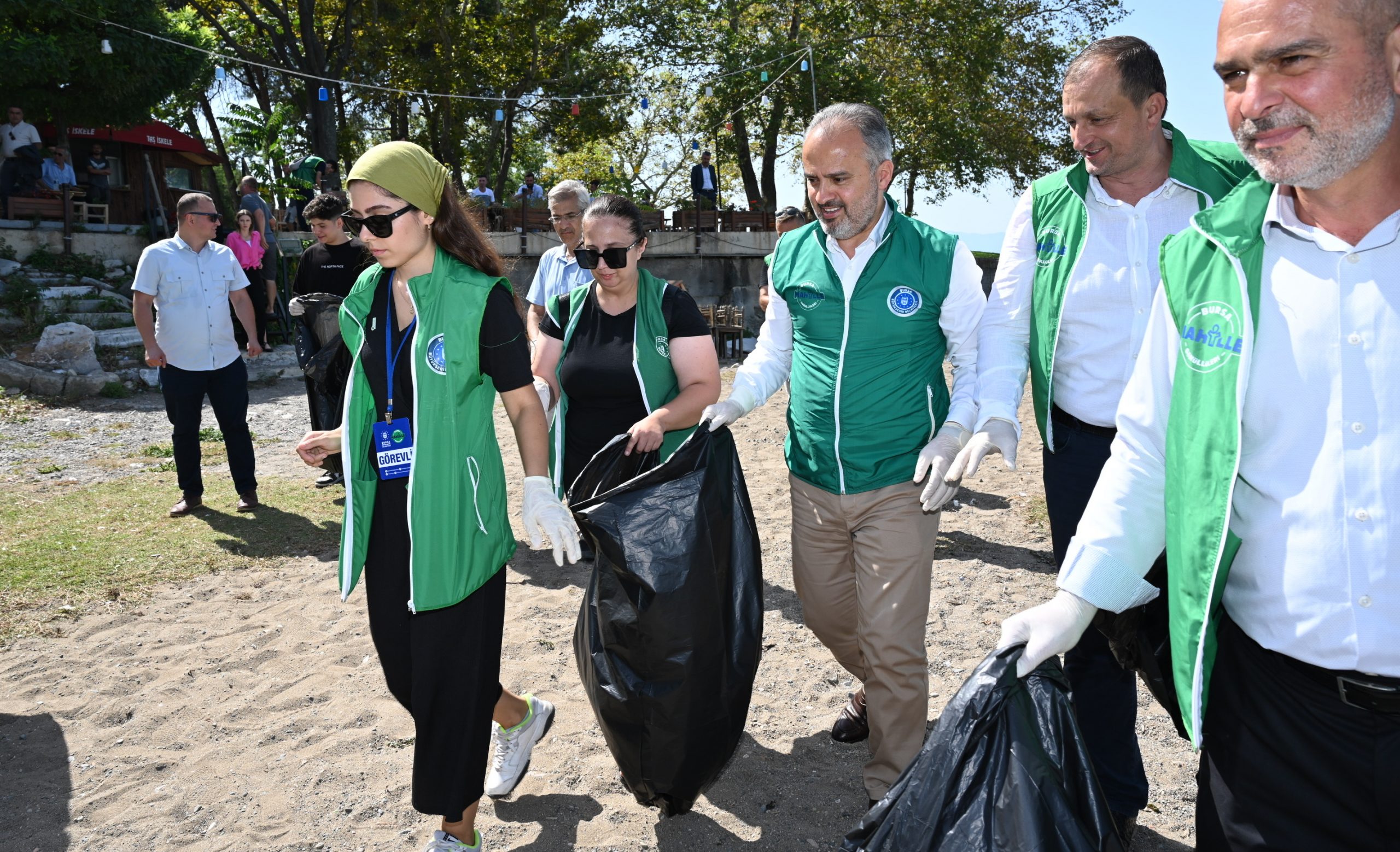 Bursa Büyükşehir Belediye Başkanı Alinur Aktaş, Dünya Temizlik Günü etkinlikleri kapsamında İznik Belediye Başkanı Kağan Mehmet Usta ve Mahalle Gönülleriyle birlikte daha temiz bir çevre için İznik Sahili’nde çöp topladı.