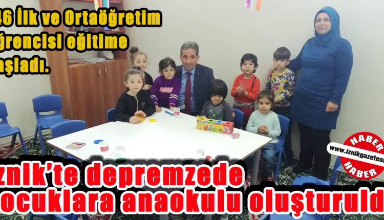 İznik’te Devlet Su İşlerine yerleştirilen depremzede çocuklar için ana sınıfı oluşturuldu.