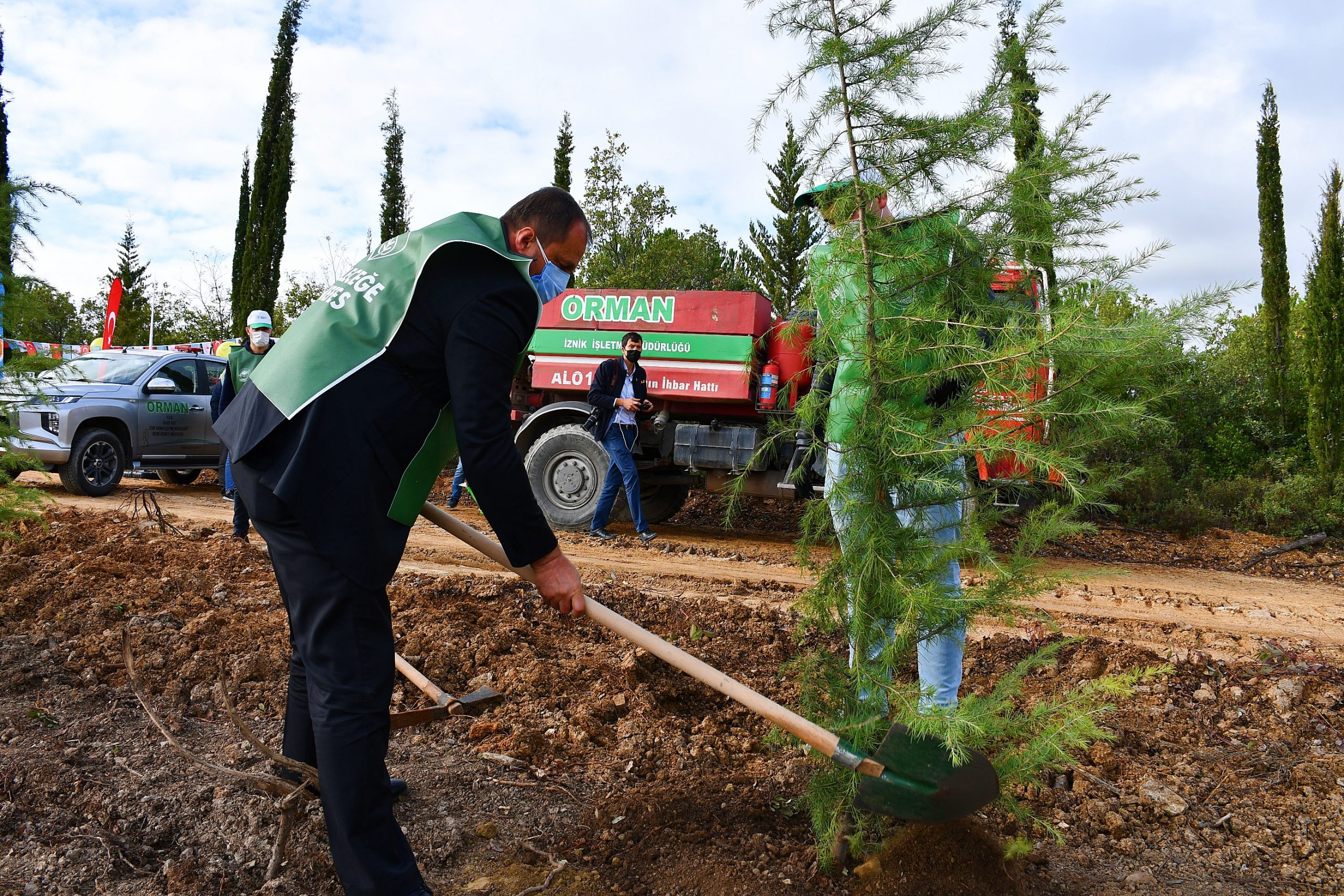 İznik Kaymakamı Recai Karal, Belediye Başkanı Kağan Mehmet Usta, Cumhuriyet Savcısı Tuğay Çağlayan, İznik Orman İşletme Müdürlüğü yetkilileri, kamu kurum ve kuruluşlarının temsilcilerinin katılımıyla Milli Ağaçlandırma Günü etkinliği gerçekleştirildi. İznik Orman İşletme Müdürlüğü tarafından belirlenen alan dikime hazır hale getirilerek fidanlar tüm katılanlar tarafından 11.11.2020’de saatler 11:11’i gösterirken toprakla buluştu.