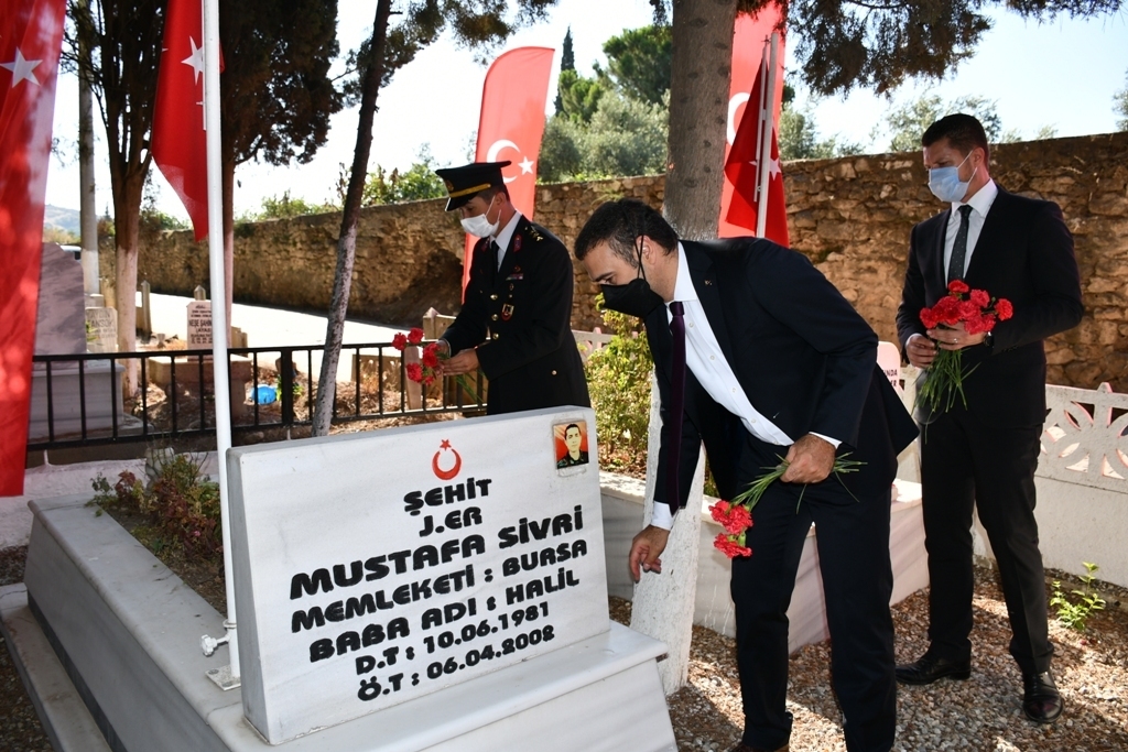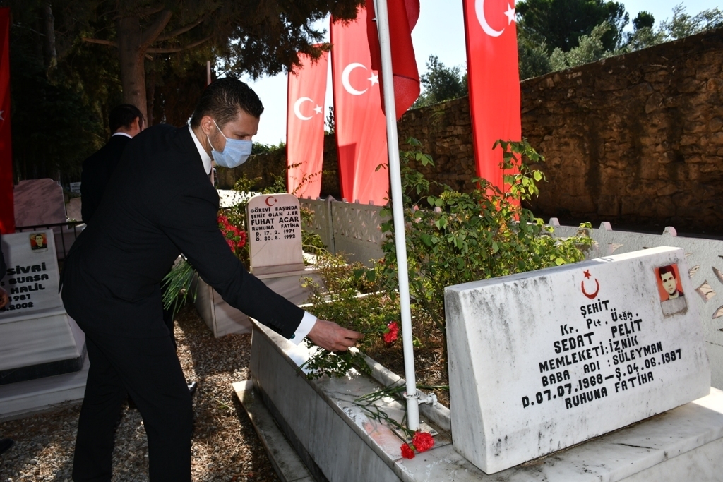 Atatürk Anıtı önündeki törenlerin ardından İlçe Şehitlik Mezarlığında törene geçildi. Programda Eşrefzade Camii Müezzin Kayyumu Osman Küçük’ün Kuran-ı Kerim tilaveti gerçekleştirdikten sonra İlçe Müftü Vekili Hasan Akçay, dua ve niyazda bulundu. Protokol üyeleri şehitlik mezarlarına karanfil çiçeği bıraktı.