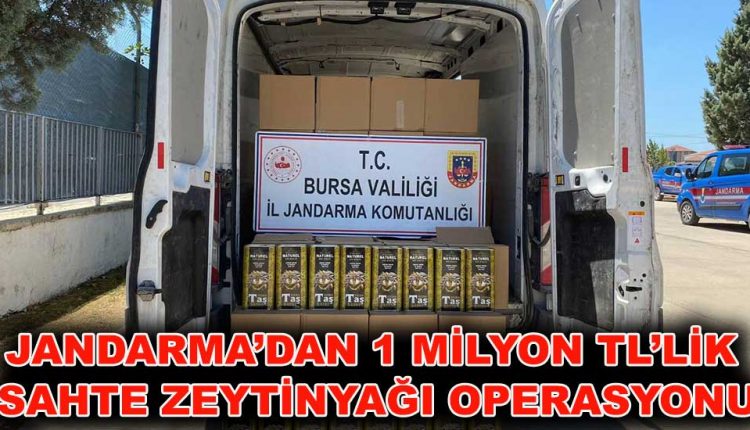 Bursa Jandarma Komutanlığı ekipleri Yenişehir Jandarma komutanlığı ile birlikte Yenişehir Karaköy mahallesinde bir araç içinde piyasa değeri 1 milyon TL olan 3 bin litre sahte zeytinyağı ele geçirdi.