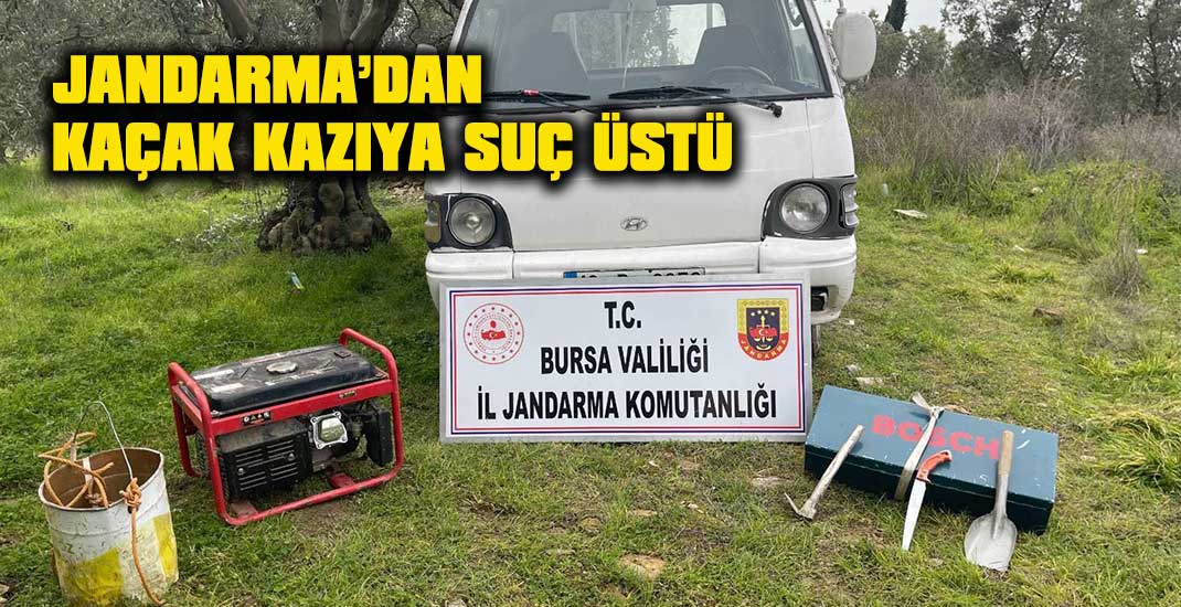 İznik İlçe Jandarma Komutanlığı İlçeye bağlı Tacir Mahallesinde kaçak kazı yapan kişileri kazı esnasında suç üstü yakaladı.