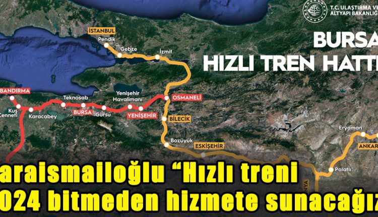 Ulaştırma ve Altyapı Bakanı Adil Karaismailoğlu, Bursa Emek – YHT Gar – Şehir Hastanesi Metrosu ve Bursa Hızlı Tren Projesi’nde incelemelerde bulundu, ardından basın açıklaması yaptı. Bursa’yı “Balıkesir-Bandırma – Bursa – Yenişehir – Osmaneli Hızlı Tren Hattı” projesi ile yeniden demiryolu ile kavuşturduklarını belirten Karaismailoğlu, Ankara-İstanbul YHT Hattı’na bağlantılı olarak çift hatlı, hızlı tren hattı inşa ettiklerini söyledi. Karaismailoğlu, projenin; yapım çalışmaları sürdürülen toplam 145 kilometre altyapı ile 201 kilometre üstyapı yapım işini kapsadığına işaret ederek, “Proje kapsamında 7 adet istasyon inşasının yanı sıra, toplam uzunlukları 18 kilometre olan 12 adet tünel, 4,6 kilometre 10 adet kaçış tüneli, 1 kilometre 5 adet aç-kapa tünel, 4 kilometre uzunluğunda 28 adet demiryolu köprüsü, 4 kilometre uzunluğunda 4 adet viyadük ve 1,5 kilometre uzunluğunda 66 adet altgeçit ve toplam 155 adet menfez imalatı yapılacaktır” ifadelerini kullandı.