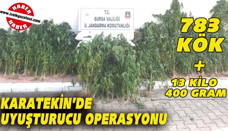 İznik’ bağlı Karatekin mahallesinde kaçak kenevir ekimi yapıldığı ve büyütüldüğü istihbaratı alan jandarma ekipleri, düzenledikleri operasyonla Ö.Ş.Ö (17), E.B. (23) ve R.D.(62)’yi gözaltına aldı. Şahısların yapılan sorgusunda ekim yaptıkları yeri tespit eden ekipler, boyları yarım metre ile 2 metre arasında değişen 783 kök kenevir ele geçirdi.