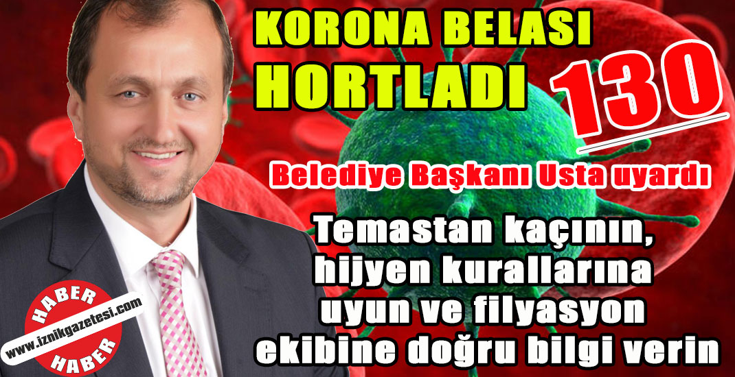 İznik’te koronavirüs belası yeniden hortladı. Testi pozitif çıkan 40 vakanın tedavileri devam ederken 90 kişi ise evlerinde karantinaya alındı. Sayı giderek artarken Belediye Başkanı Kağan Mehmet Usta vatandaşları uyardı : “Özellikle ilçe dışından gelen kişilerle temas etmeyin, maske ve hijyen kurallarına uyalım virüs bitmedi rehavete kapılmayın. Bugüne kadar verdiğimiz mücadele heba olmasın. Sayı hızlı bir şekilde artıyor. Virüsten korunmak elimizde” dedi.