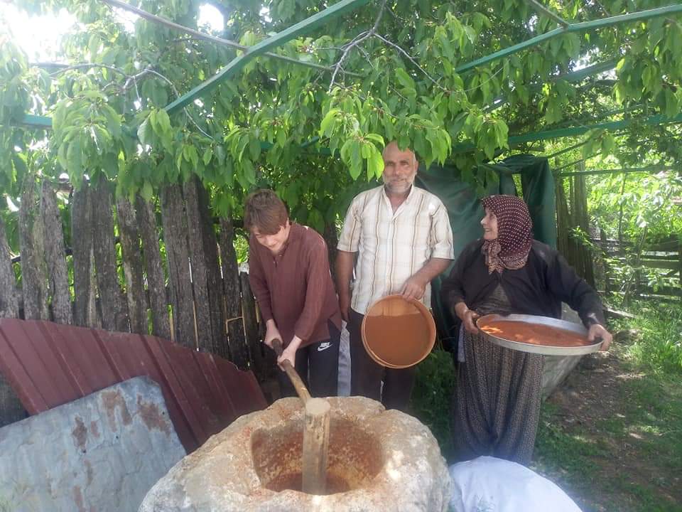 İznik’e bağlı Sarıağıl mahallesinde yaşayan köylüler kırmızı toz biberi dibek taşında öğüterek kendileri yapıyorlar.