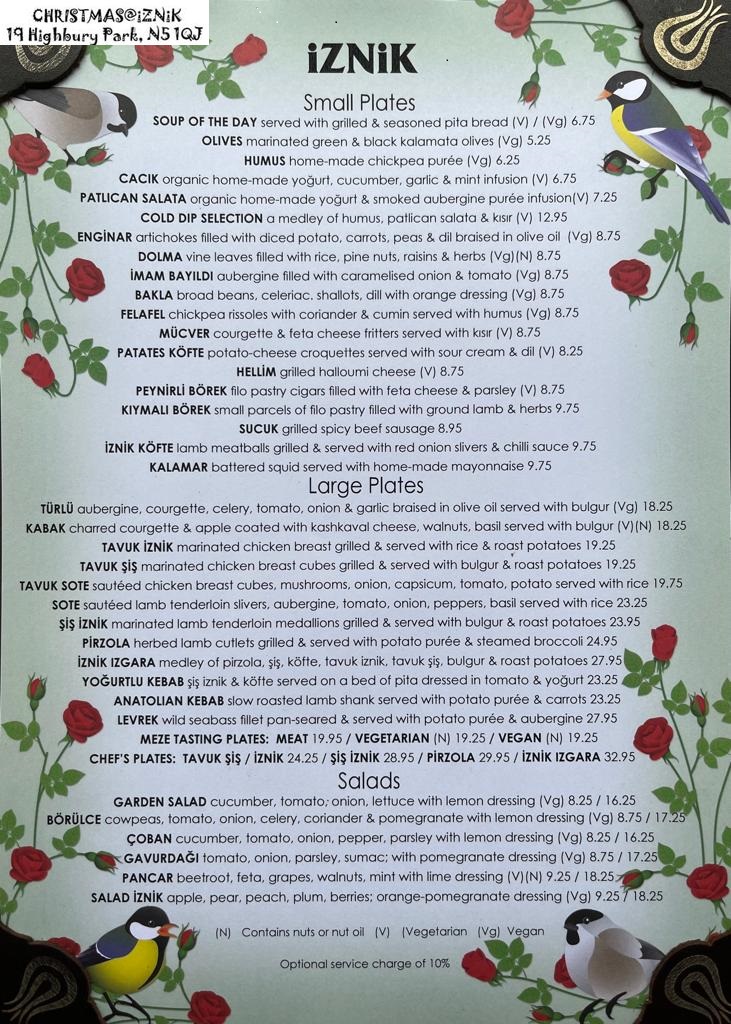 O zaman İZNİK RESTAURANT’ın menüsüne bir göz atın o zaman. (1 £ =22,67TL)