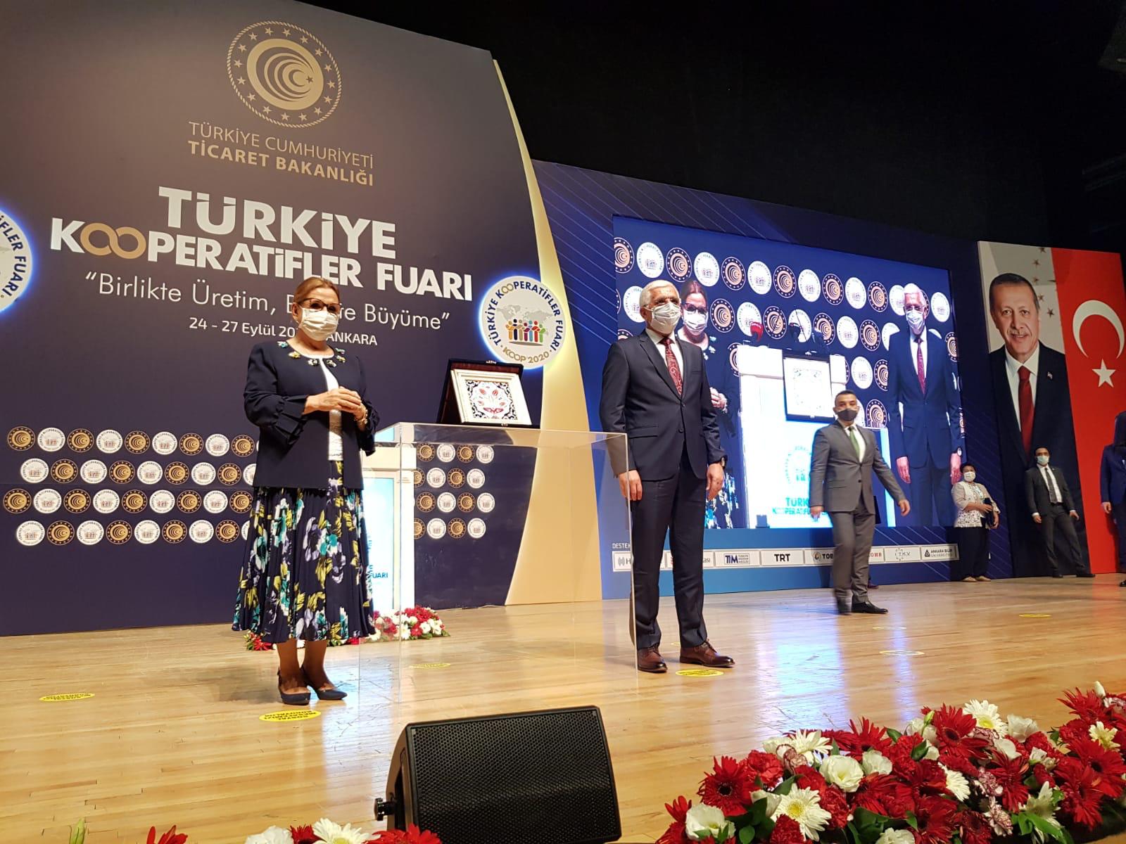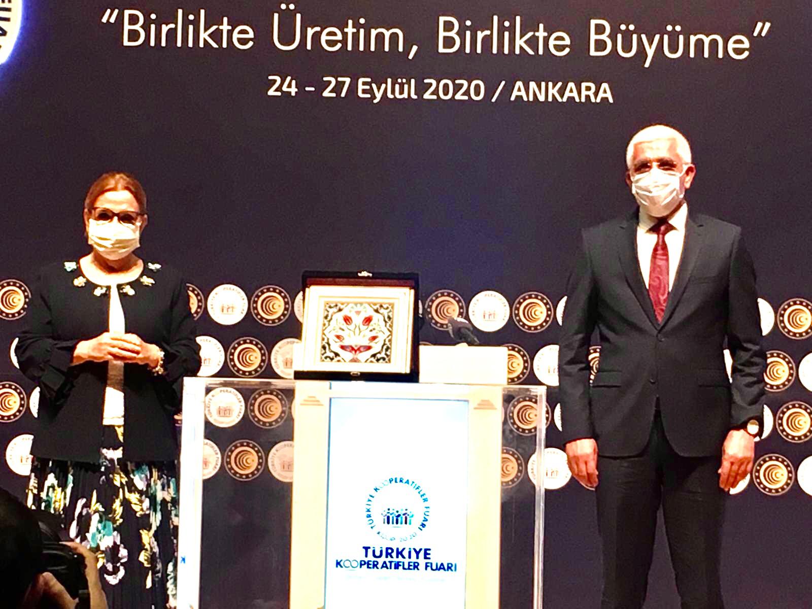 “Birlikte Üretim, Birlikte Büyüme” teması ile düzenlenen ve açılışını Ticaret Bakanı Ruhsar Pekcan ve Aile Çalışma ve Sosyal Hizmetler Bakanı Zehra Zümrüt Selçuk’un yaptığı fuarda, başarılı kooperatiflere ödülleri verildi.