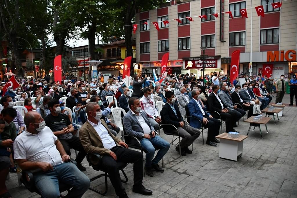 İznik Kaymakamı Bülent Bayraktar yaptığı konuşmada “Düşmanınız mertçe sizinle savaşıyorsa bileği güçlü olan kazanır. O şekilde yapılan bir mücadele sonrasında ki mağlubiyette çokta üzülmezsiniz. Maalesef hainlik, hainliğin sonu yok. En acısı da hainlikle karşılaşmak. Maalesef dört yıl öncesine gelene kadar yaklaşık elli yıllık süreç içerisinde kurgulanmış, adeta içimize gaz gibi sızmış hain bir güruh maalesef dişini gösterdi. Gerek milliyetçiliğimizi gerek inançlarımızı kullanarak içimize gaz gibi sızmışlar. Dört yıl önce gördük ki sırtımızı döndüklerimiz bizi sırtımızdan bıçakladı. Ama o gün Cumhurbaşkanımızın liderliğinde ve önderliğinde bu toplum ferasetini gösterdi ve o önüne durulamaz zannedilen tankların, tüfeklerin önüne göğsünü siper etti. Allah bu millete o günleri bir daha yaşatmasın. Yaşatırsa ne olacağını ispat etti ancak bir daha ispat etmek zorunda bırakmasın. Allah bu toplumun yolunu açık etsin” dedi.