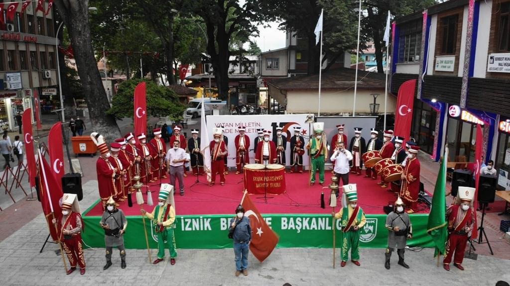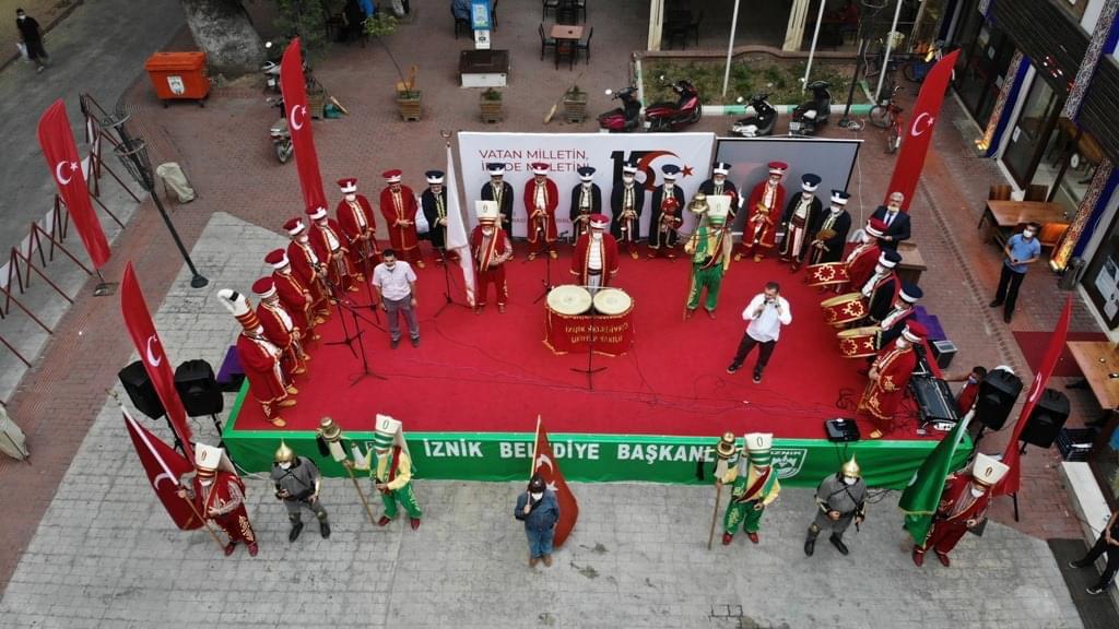 15 Temmuz Demokrasi ve Milli Birlik Günü programları akşam saat 20.00’de İznik Milli İrade Meydanında saygı duruşu ve İstiklal Marşının okunması ile devam etti. Ayasofya Orhan Cami İmam Hatibi Mahmut Şahin’in sunumuyla gerçekleşen gecede Yakup Çelebi Cami İmam Hatibi Bekir Yılmaz ve Halit Temiz Mescidi İmam Hatibi İsmail Demircan Sela ve Kur’an-ı Kerim tilaveti gerçekleştirdiler.İznik Belediyesi Mehter Takımı seslendirdiği birbirinden güzel marşlar ile coşkuyu arttırdı.