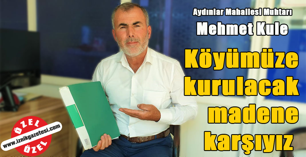 İşte tüm bu gelişmelerin ardından sessizliği bozarak Gazetemize açıklamalarda bulunan Aydınlar mahallesi Muhtarı Mehmet Kule “ biz köyümüze maden kurulacağı haberlerinin basın yer almasının ardından köy halkı olarak bir toplantı gerçekleştirdik. Bu toplantıya köyün ileri gelenleri dahil hemen hemen herkes katıldı. Kurulacak madenin köyümüze hiçbir faydasının olmadığı ve vereceği zararlar konusunda tartışmalar yaptık ve sonucunda köy halkının tamamı madenin kurulmasına karşı olduklarını açıkça ifade ettiler. Toplantının ardından köy halkının madene karşı olduğunu, çevreye vereceği zararları, bölgesel ve tarımsal etkilerini, içme suyu, İznik Gölü  ve tarımsal sulamaya vereceği zararları belirten bir dilekçe yazdık ve bu dilekçeyi toplantıya katılan herkese imzalattık. Köy halkı tarafından imzalanan dilekçeleri Bursa Büyükşehir Belediyesi, Buski genel müdürlüğü, Bursa Çevre ve Şehircilik İl Müdürlüğü  ve İl tarım Müdürlüğüne bizzat kendim götürüp teslim ettim. Şahsım köy Muhtarı olarak ve vatandaşlarımla birlikte büyük bir özveri ile üzerime düşen görevi yerine getirdiğimi düşünüyorum. Aydınlar halkı olarak çevre köylerimizi ve İzniğimizi de düşündüğümüzden kimsenin şüphesi olmasın. İznik’te harekete geçilmeden önce biz madene karşı olduğumuzu, bu olayın hem gözlemsel hemde hukuki olarak takipçisi olduğumuzu herkes ile paylaşmıştık zaten” dedi.