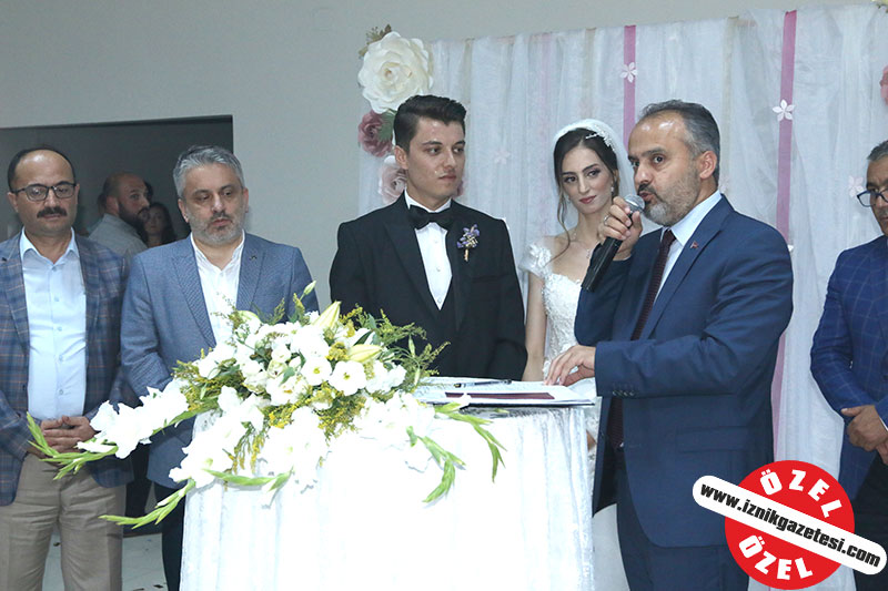 Çiftin Nikahını Büyükşehir Belediye Başklanı Alinur Aktaş kıyarken, evlilik cüzdanını ise Ak Parti Bursa il Başkanı Ayhan Salman gelin Şevval Usta Aydoğdu’ya verdi.