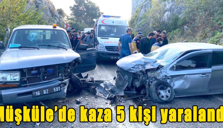 Müşküle mahallesi Sivrikaya mevkii yakınlarında meydan gelen trafik kazasında Orman işletme şefliğine ait resmi araç ile bir otomobil kafa kafaya çarpıştı. Kazada 5 kişi yaralandı.