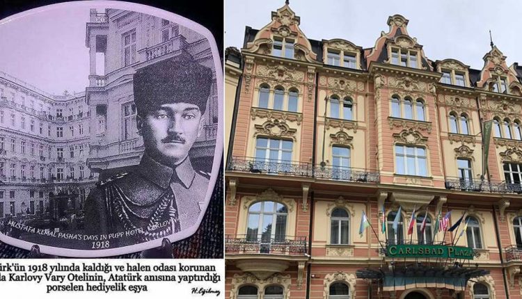 Mustafa Kemal Atatürk, 30 Haziran – 28 Temmuz 1918 tarihleri arasında Karlovy Vary’de kalmıştır. Atatürk’ün o zaman Karlovy Vary’de kaldığı yer, şu anda Carlsbad Plaza Hotel‘dir., Atatürk ‘ün Karlovy Vary ‘de kaldığı otelin üzerindeki Atatürk’ün kaldığına dair levha ve Türkçe açıklamasını görebilirsiniz: